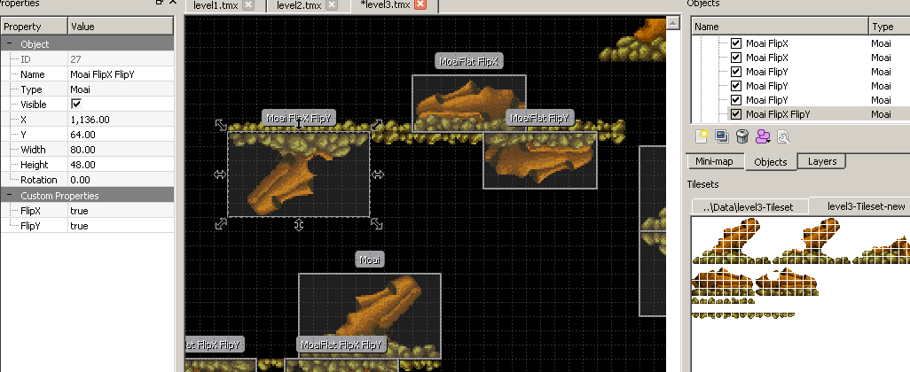 I’ve also added an object layer which is used to define the position and type of head by the game, so I know where to draw them and which way they should face (I use flipping)