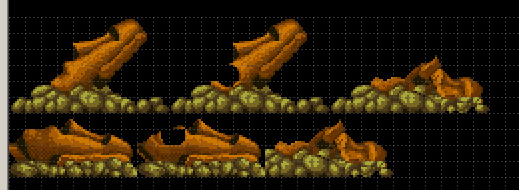 To change a head between the mouth closed, mouth open and destroyed states at runtime, the gids that make up the section of the tilelayer containing the head need to be changed (I’m using baylej/tmx btw).